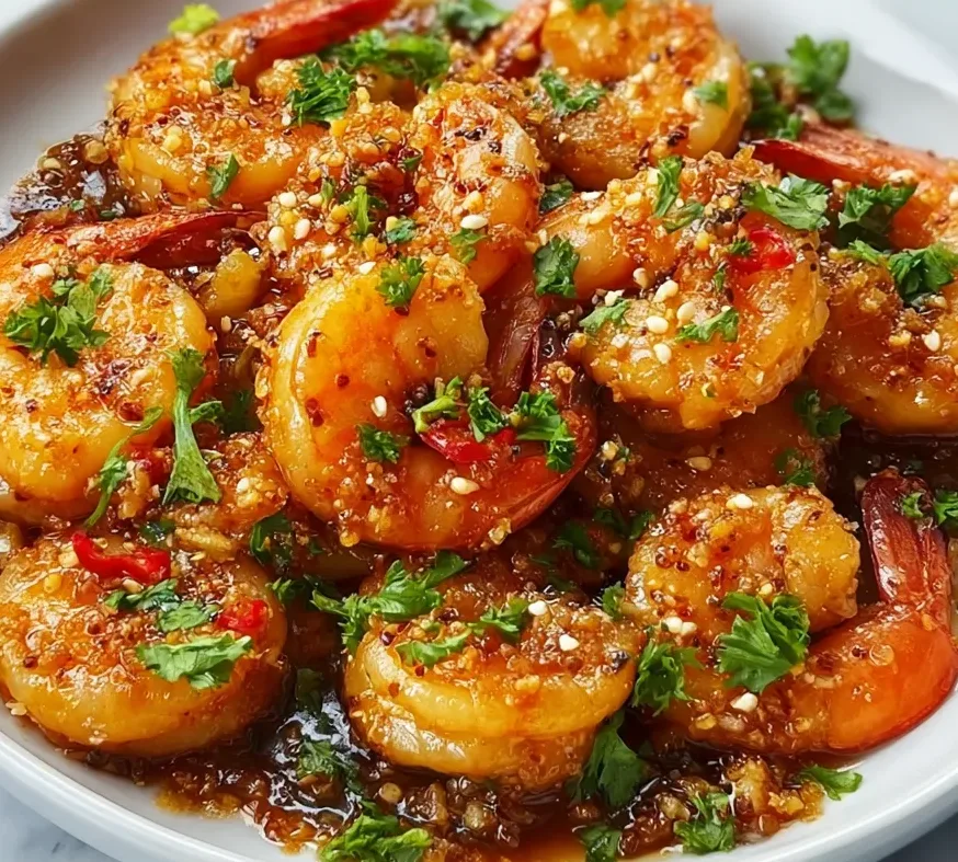 This Asian Garlic Shrimp is bold, garlicky, and ready in under 15 minutes! Juicy shrimp tossed in a sweet and savory soy-garlic glaze with ginger and sesame — the perfect quick weeknight dinner that tastes restaurant-quality.