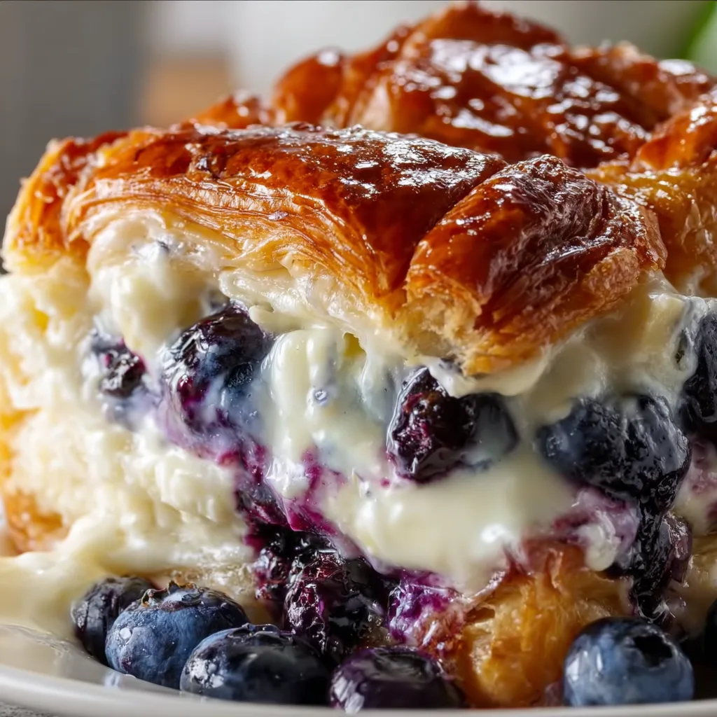 This Blueberry Cream Cheese Croissant Casserole is rich, fluffy, and bursting with juicy berries and creamy goodness. Made with buttery croissants, whipped cream cheese filling, and a vanilla custard, it bakes up golden and indulgent—perfect for brunch, holidays, or a sweet weekend breakfast!