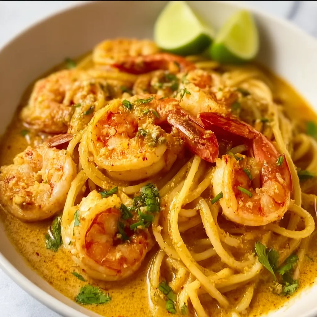 This Creamy Coconut Curry Prawn Spaghetti combines bold Thai-inspired flavors with Italian comfort food. Juicy prawns, rich coconut milk, and red curry paste come together in a luscious sauce that clings perfectly to spaghetti. It’s fast, flavorful, and unforgettable!