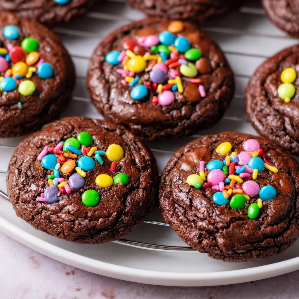 These Fudgy Cosmic Brownie Cookies have become my signature dessert for good reason – they’re the perfect balance of nostalgic charm and sophisticated flavor. The combination of that intensely chocolatey, brownie-like texture with playful rainbow toppings creates something truly special. I love watching people’s faces light up when they take their first bite! Whether you’re baking for a special occasion or simply treating yourself after a long day, these cookies deliver pure joy in every bite. Don’t forget to check out more of my favorite chocolate creations on Pinterest for endless dessert inspiration!