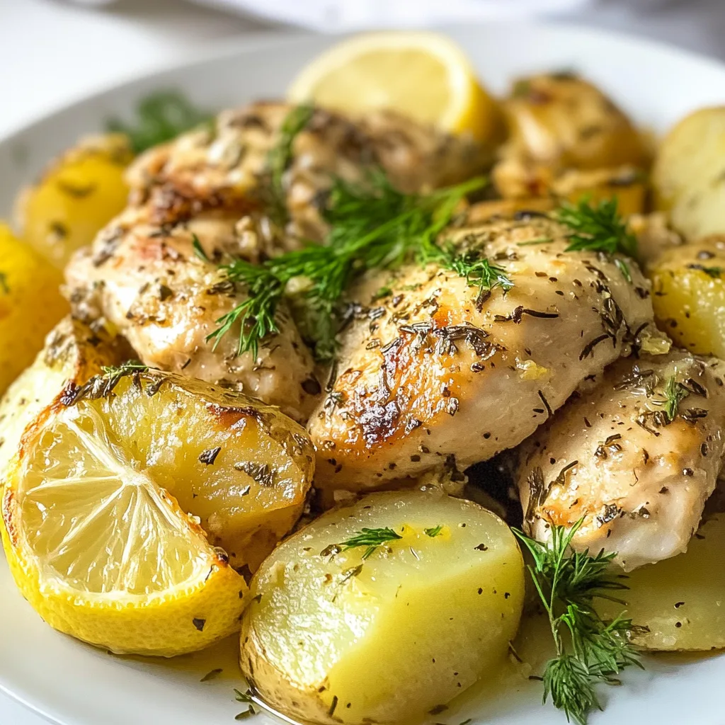 4. Pour the lemon herb mixture evenly over the chicken and potatoes.