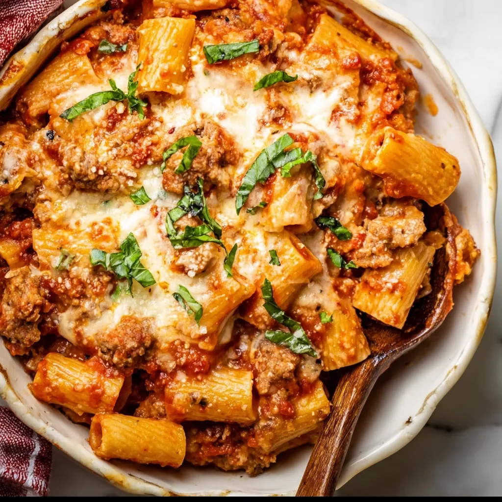 This baked Italian sausage pasta is bubbling with rich tomato sauce, gooey mozzarella, and savory sausage. A cheesy comfort classic that’s perfect for family dinners!
