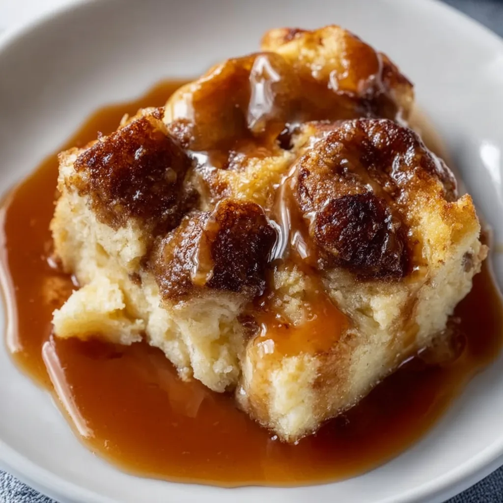 11. Pour warm bourbon sauce over the bread pudding before serving.
