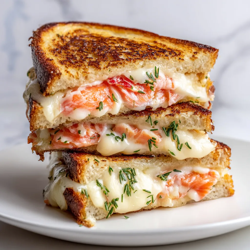 The quality of ingredients makes all the difference in this simple sandwich. Look for cold-smoked salmon rather than hot-smoked for that silky texture and delicate flavor. For cheese, I recommend a combination of cream cheese and a good melting cheese like Gruyère or white cheddar. The bread matters tremendously—sourdough or rye provide the perfect sturdy base with flavor that complements the salmon. Remember to bring cream cheese to room temperature for easier spreading. Fresh herbs like dill or chives add brightness, while capers introduce little bursts of briny flavor that cut through the richness beautifully.